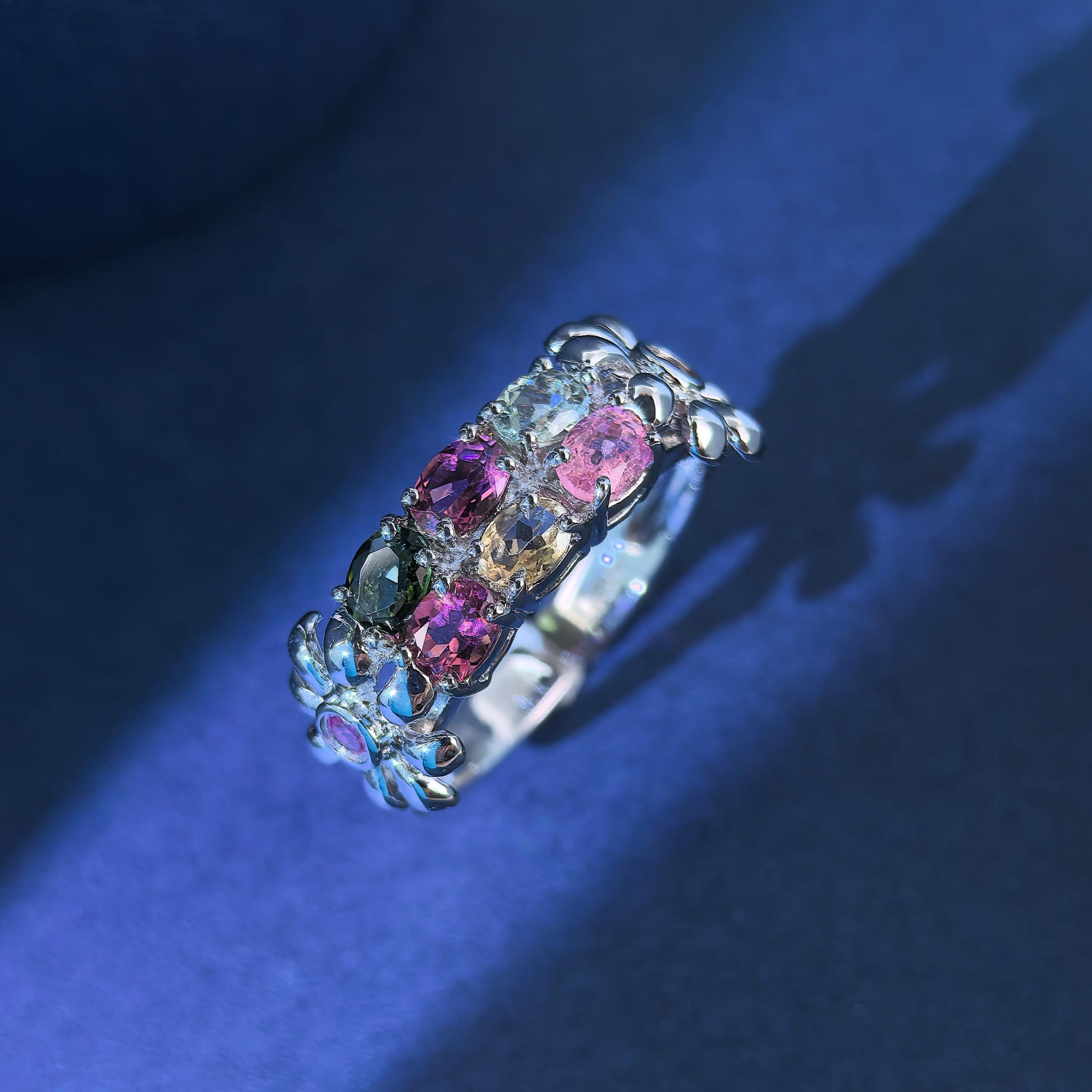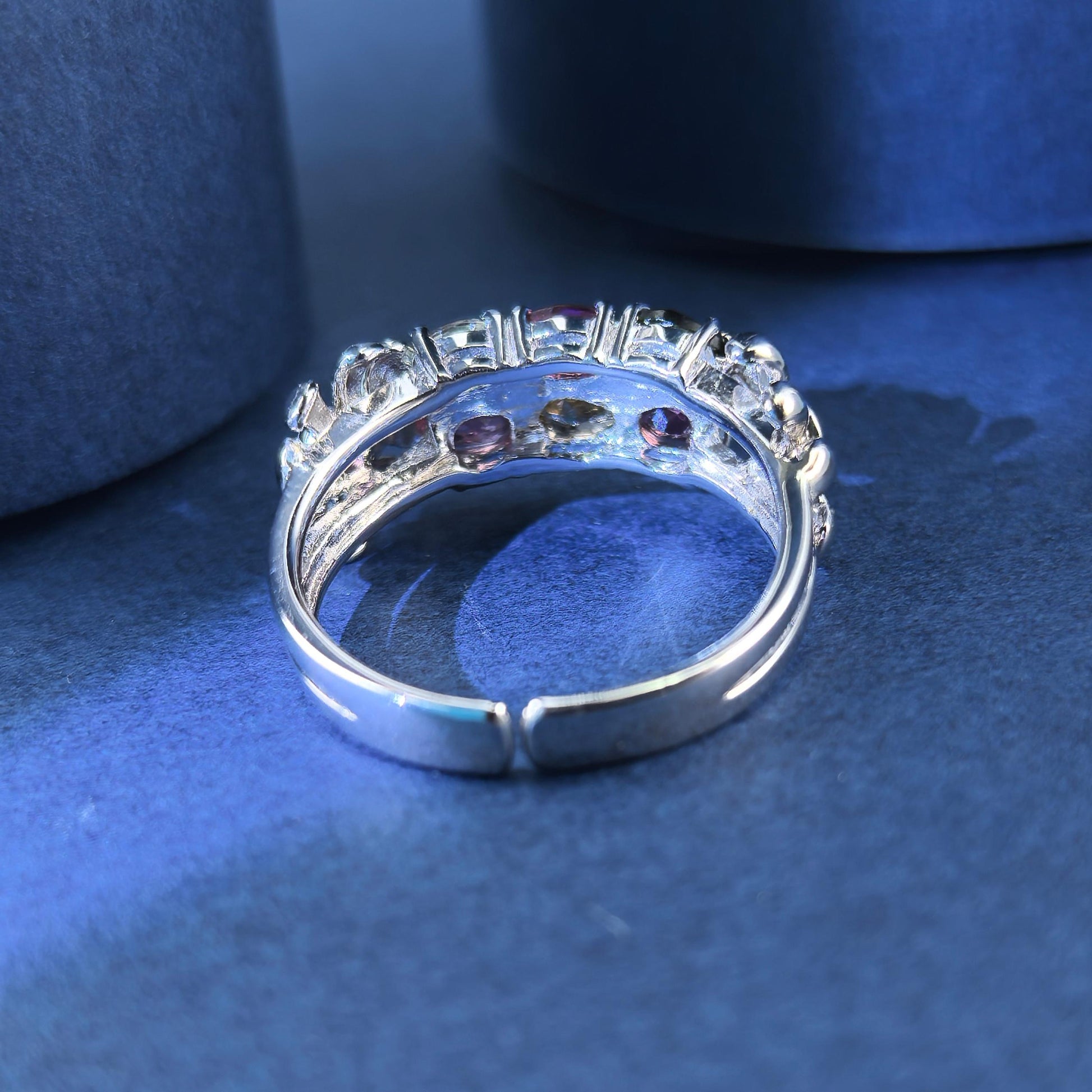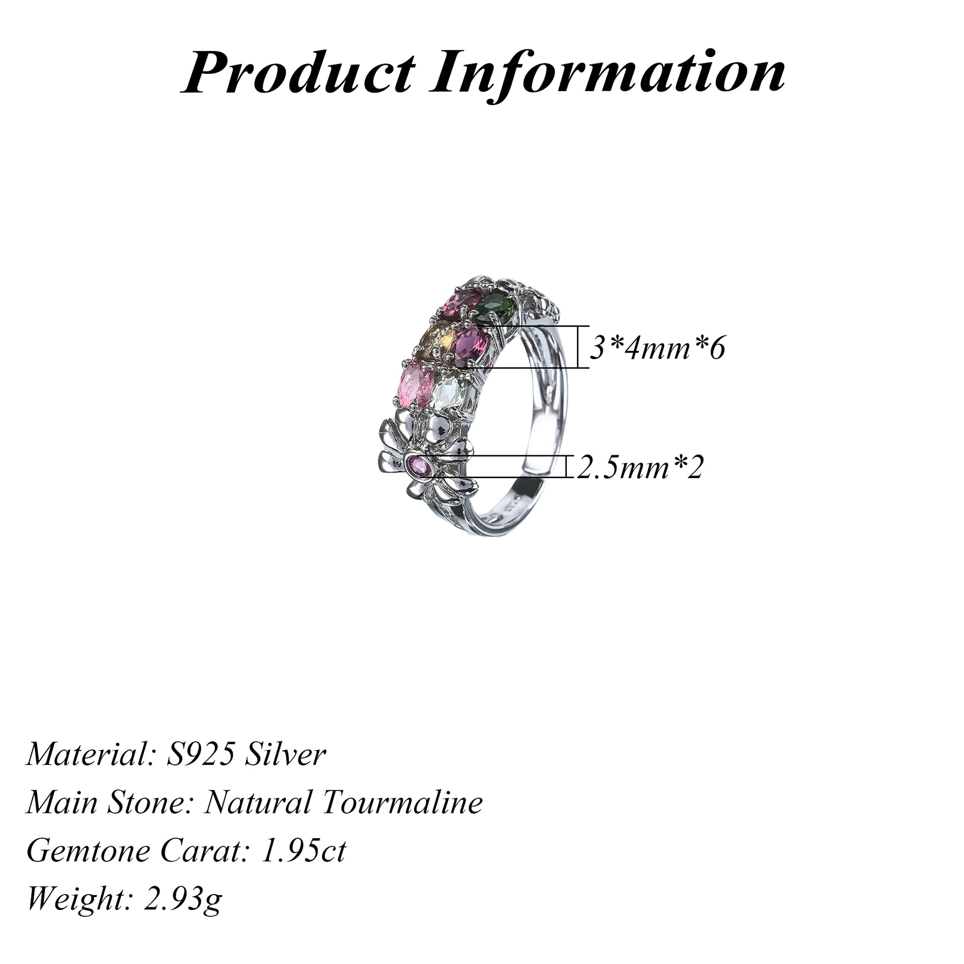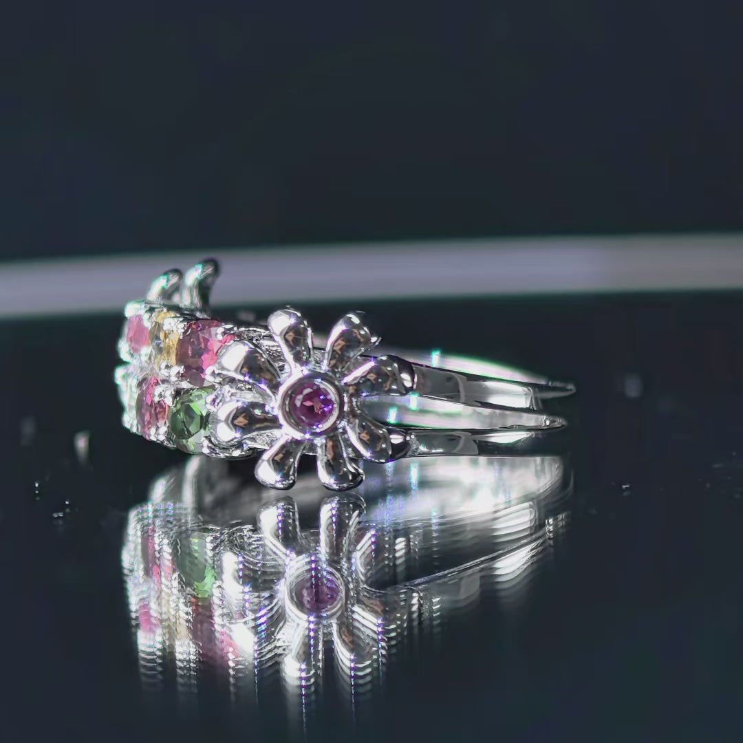 Graceful Women's Rhodium Plated Silver 925 Natural Tourmaline Flower Ring