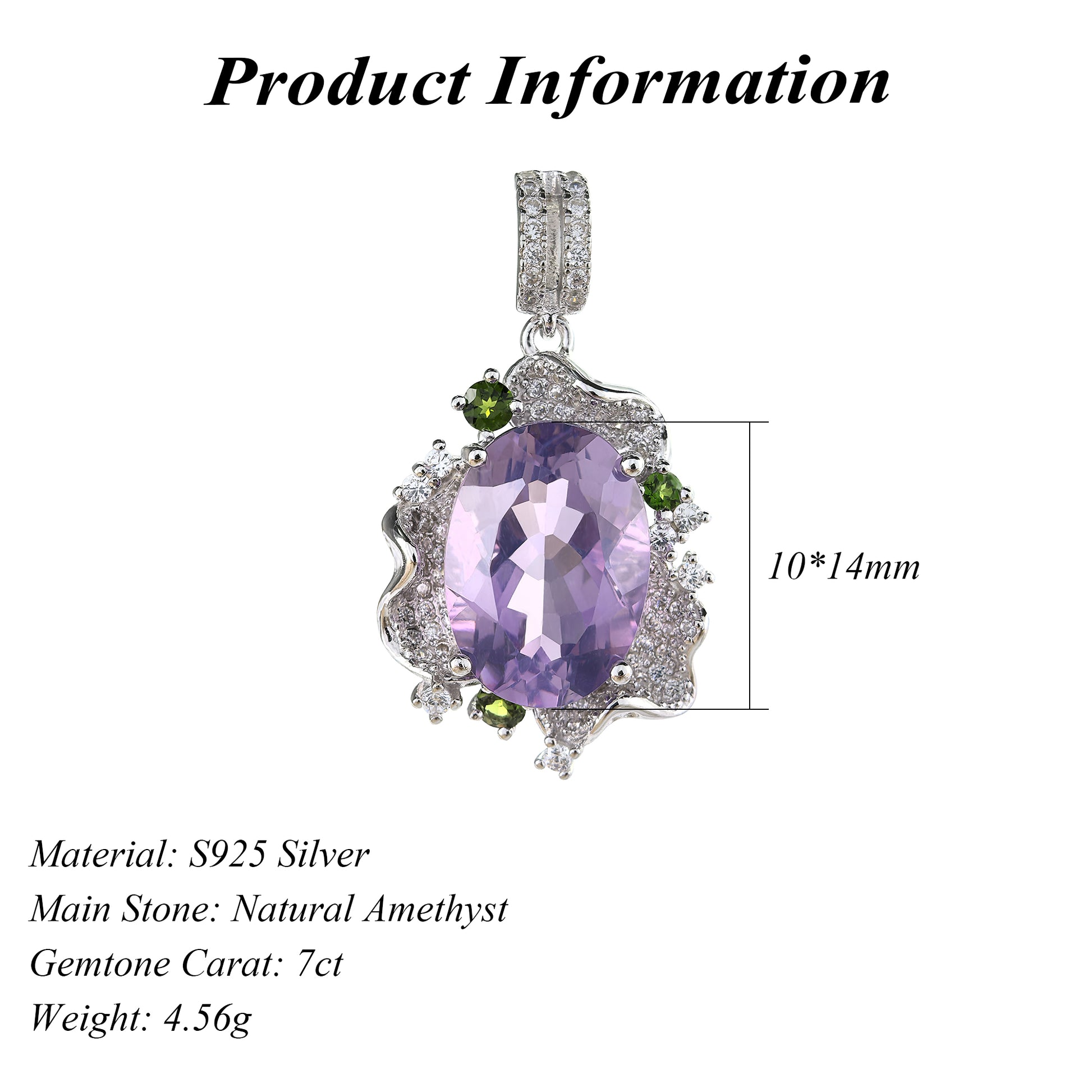Lustrous Rhodium Plated Joyas De Plata 925 Original Natural Amethyst Pendant