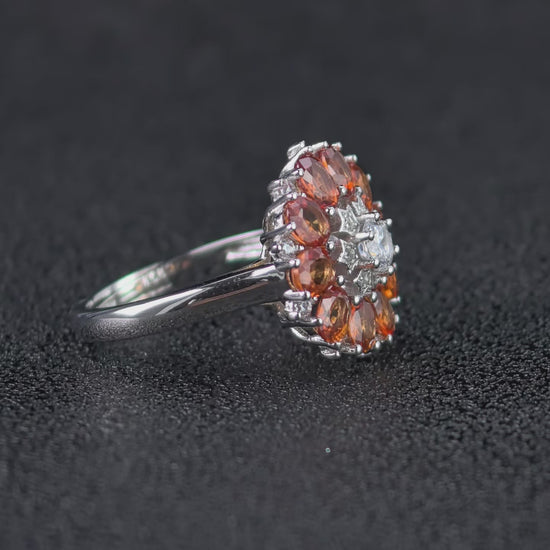 Luxurious Rhodium Plated Silver 925 Jewelry Natural Mandarin Sapphire Flower Ring