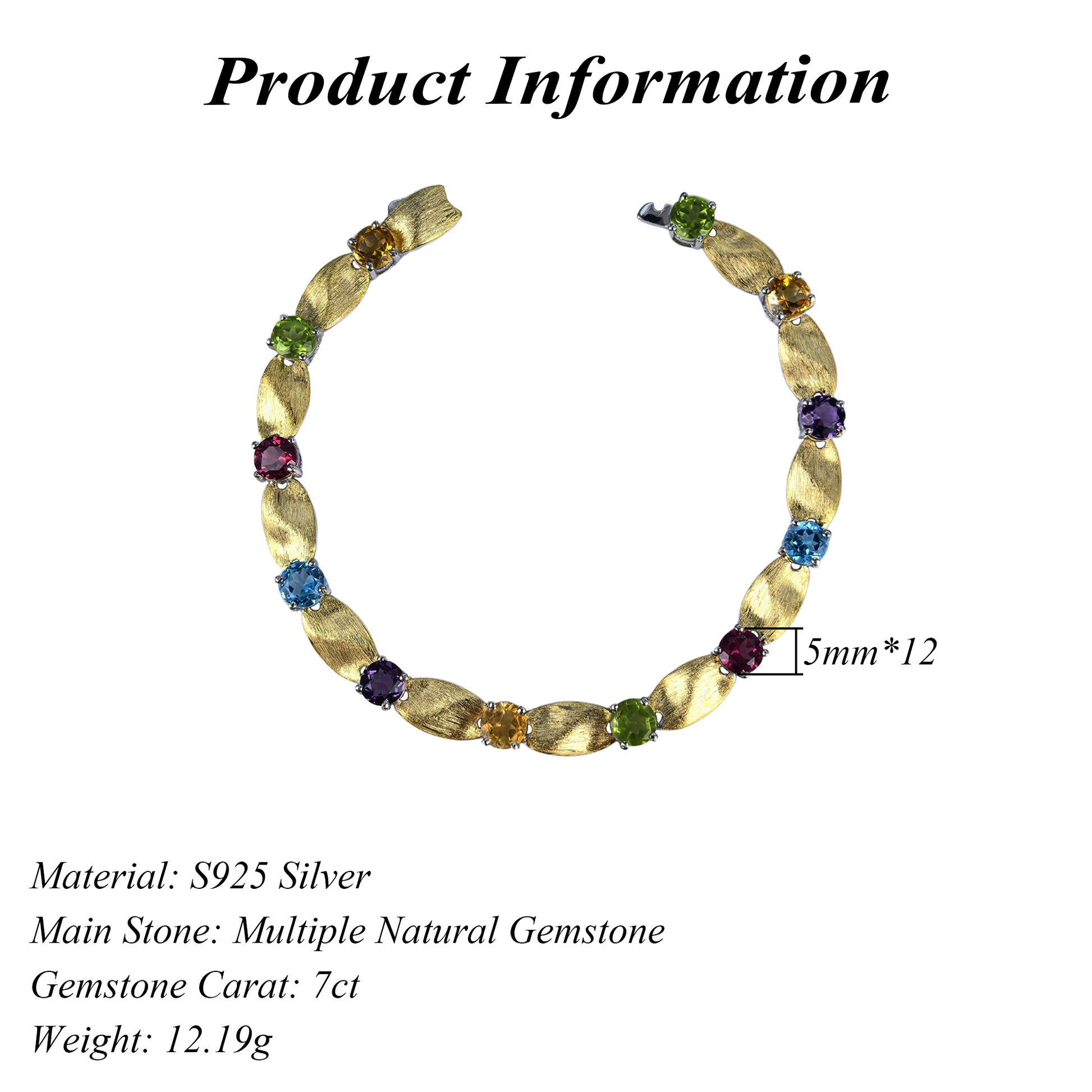 Noble Rhodium and Gold Plated 925 Sterling Silver Multiple Natural Gemstone Bracelet