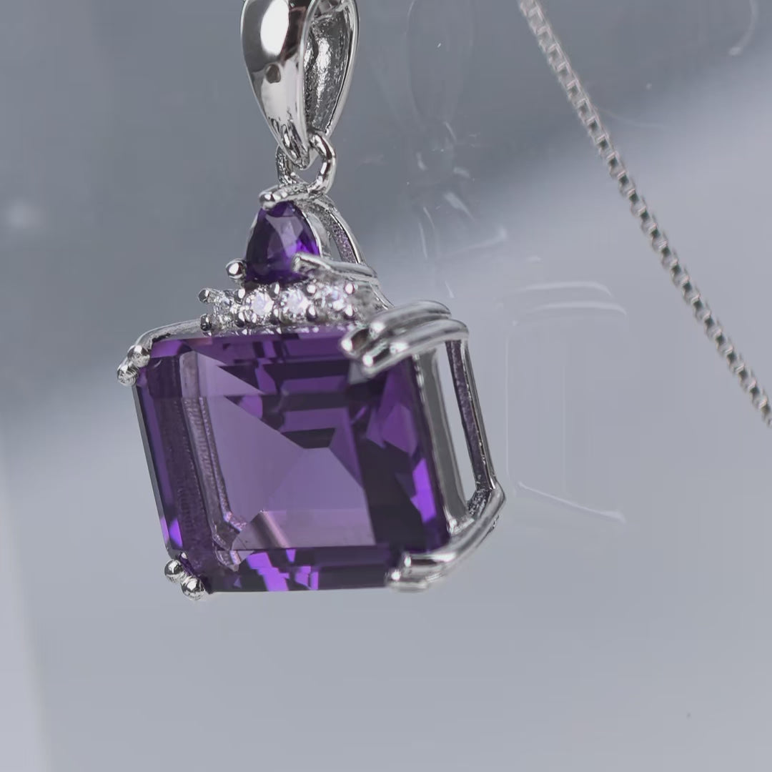 Noble Rhodium Plated 925 Silver Jewelry Natural Amethyst Pendants