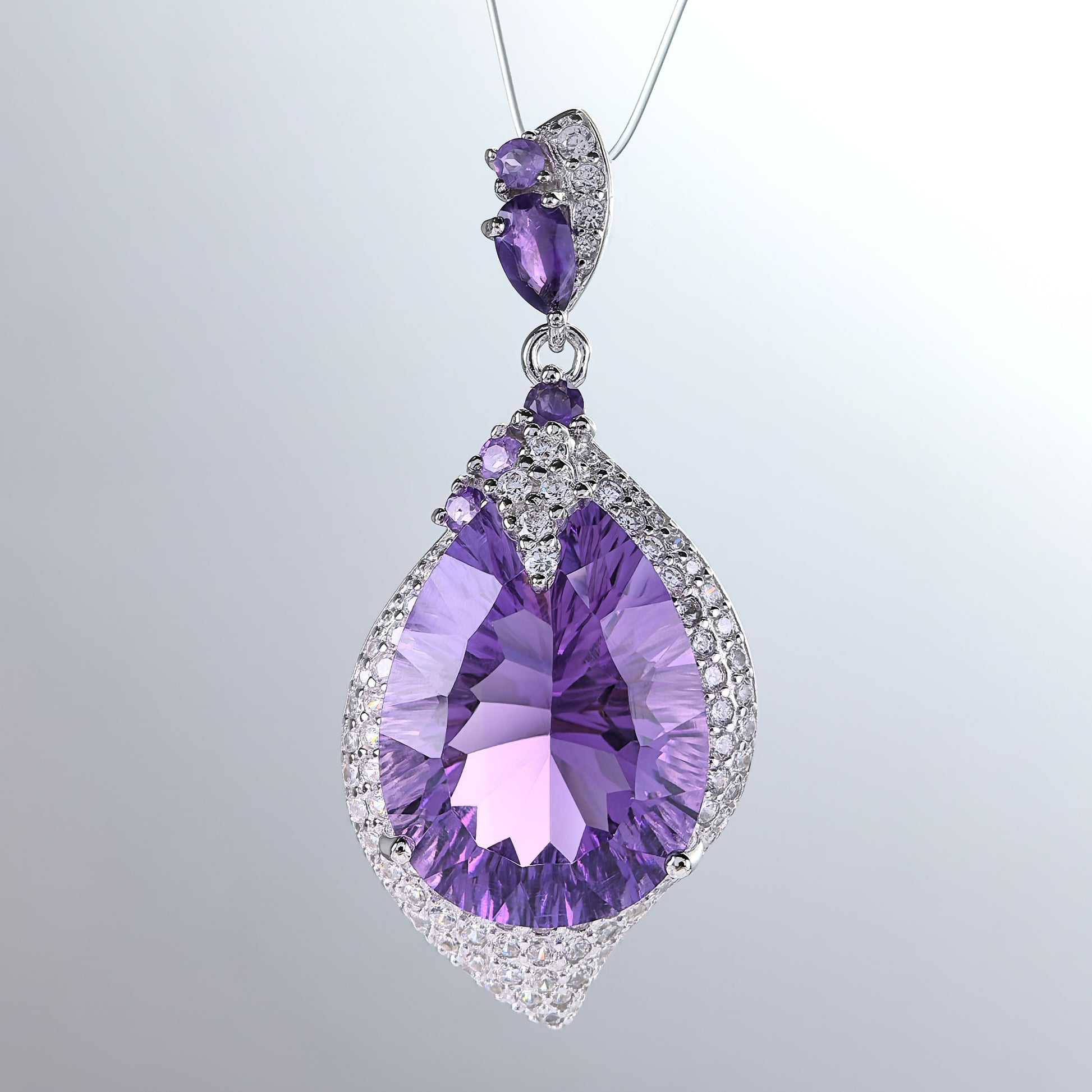 Noble Rhodium Plated 925 Sterling Silver Natural Amethyst Pendant