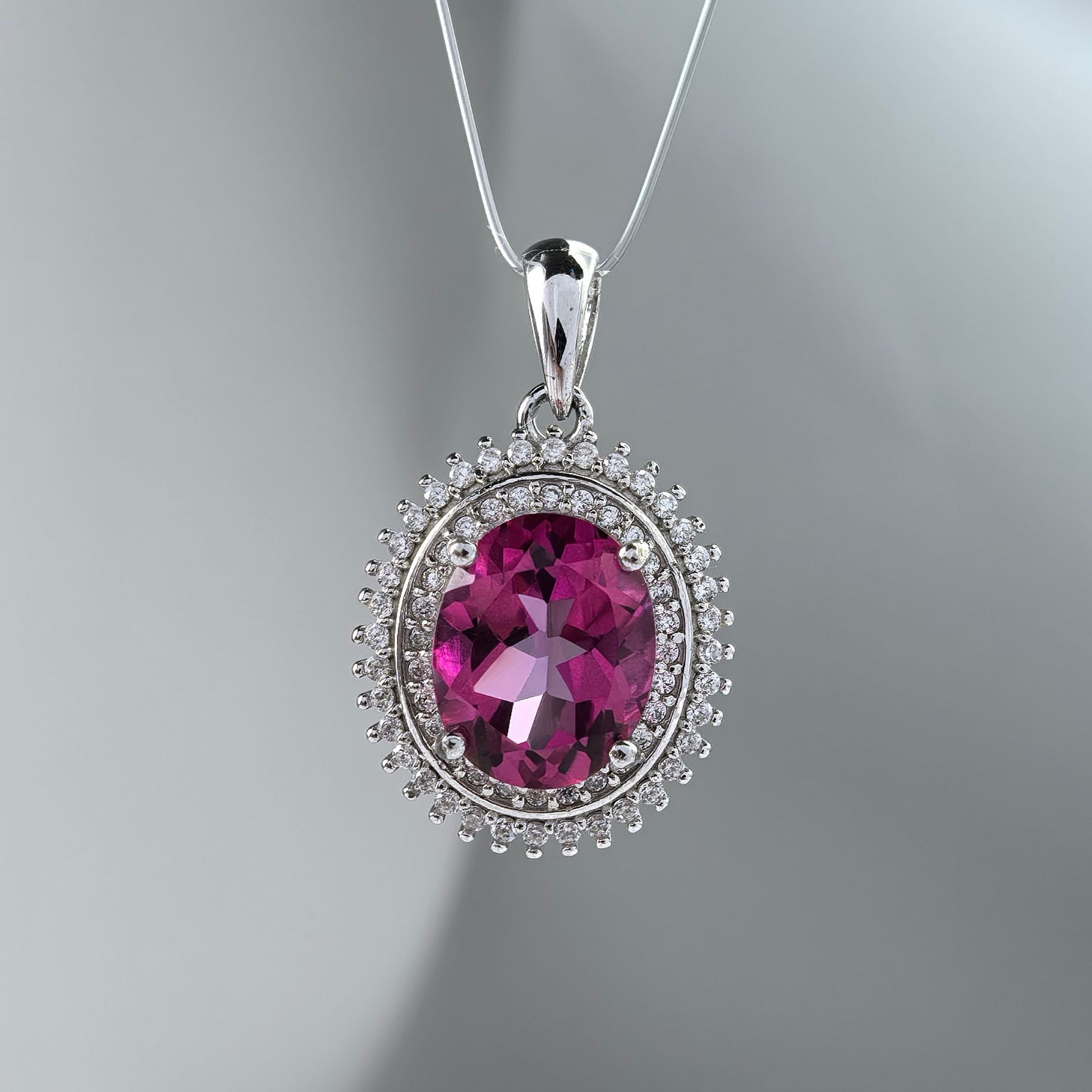 Noble Rhodium Plated 925 Sterling Silver Natural Pink Topaz Pendant