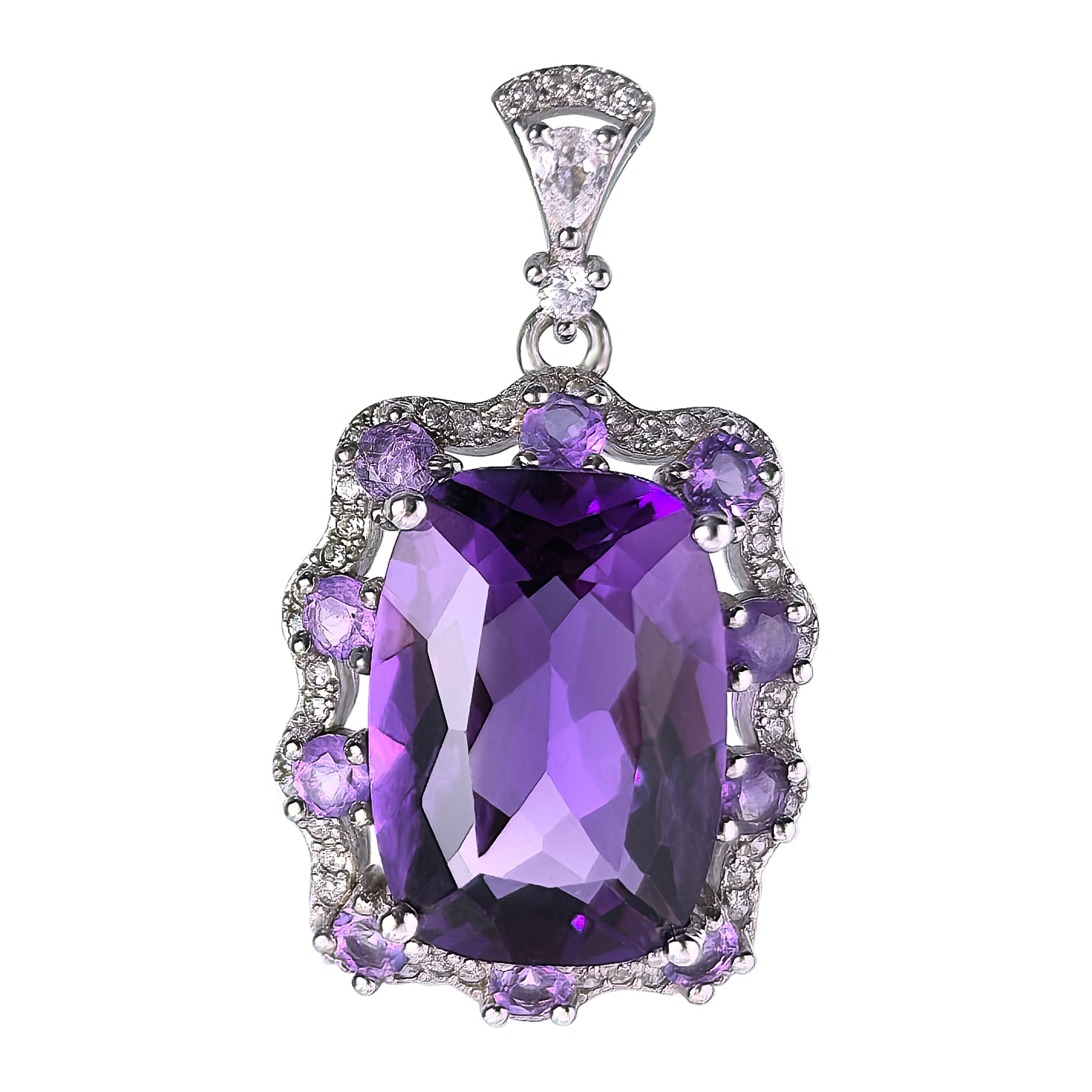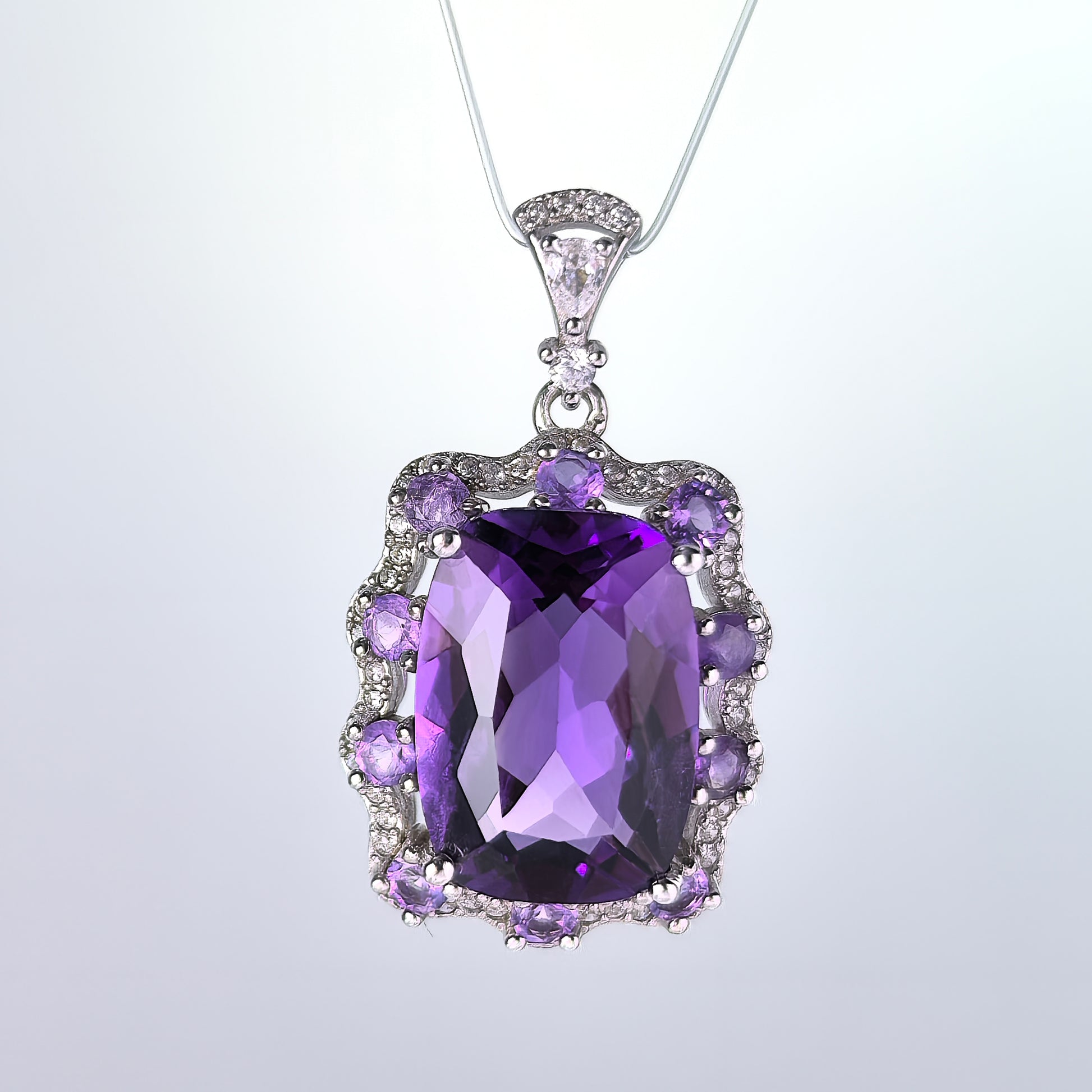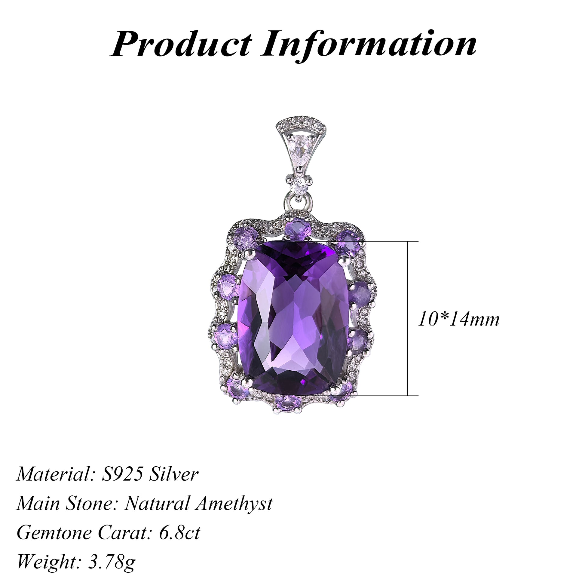 Noble Rhodium Plated Bijoux En Argent 925 Pur Natural Stone Amethyst Pendant