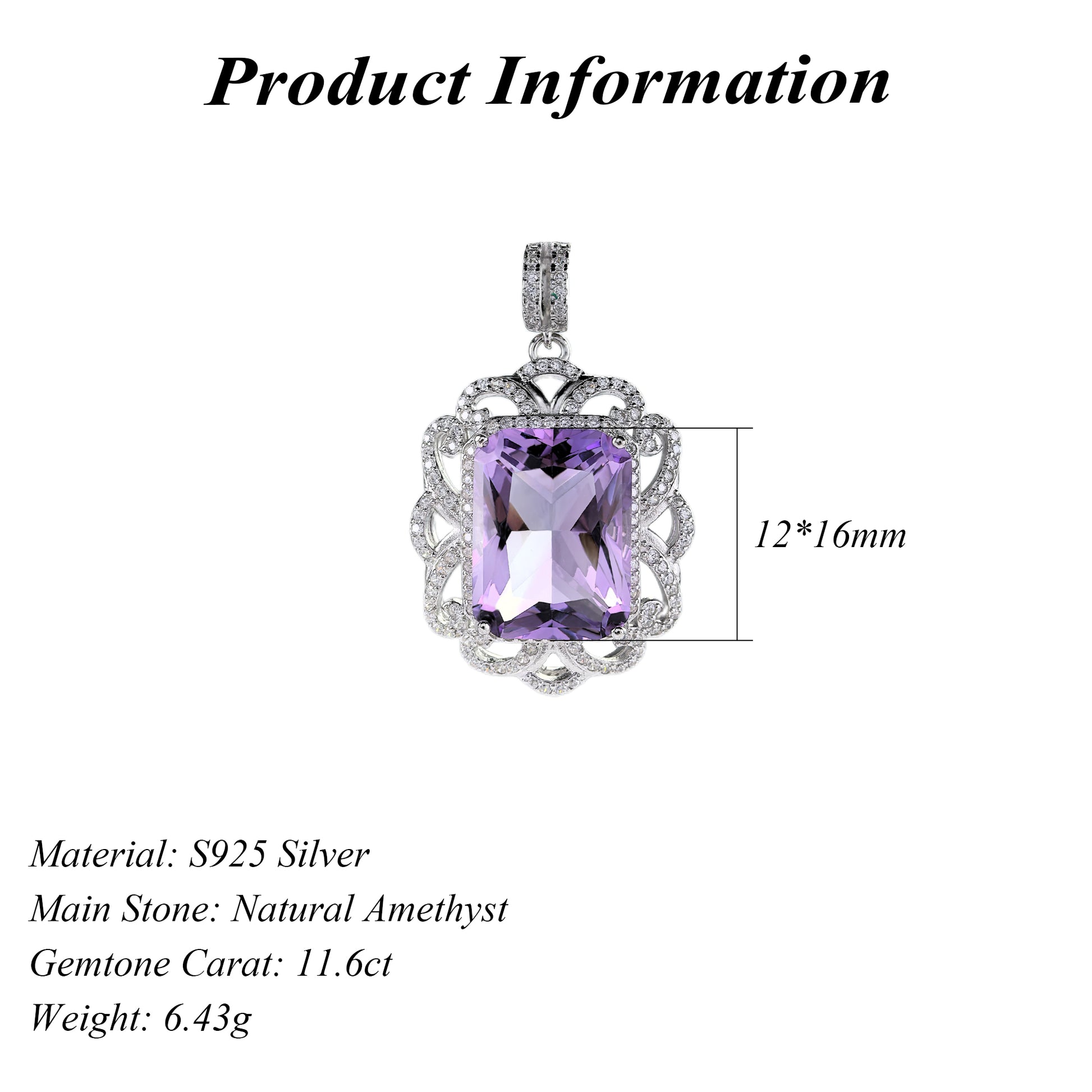Noble Rhodium Plated Silver 925 Jewelry Natural Amethyst Pendant