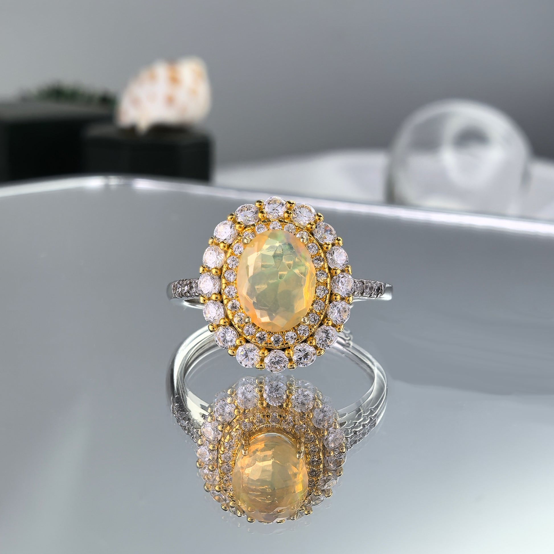 Precious Rhodium and Gold Plated Silver 925 Jewelry Natural Opal Ring