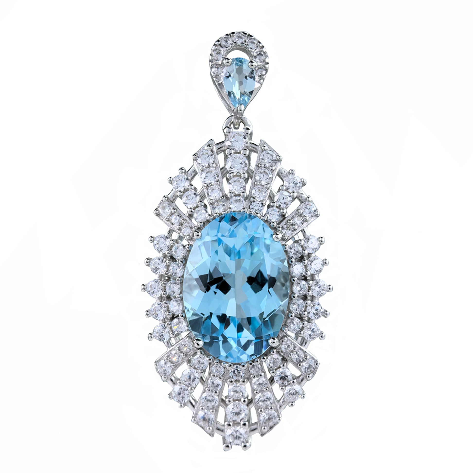 Radiant Rhodium Plated 925 Sterling Silver Natural Sky Blue Topaz Pendant