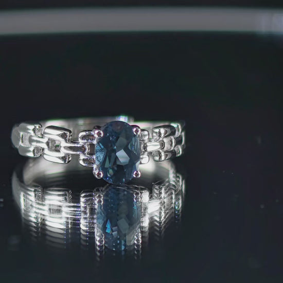 Rhodium Plated 925 Silver Oval Cut Natural London Blue Topaz Ring