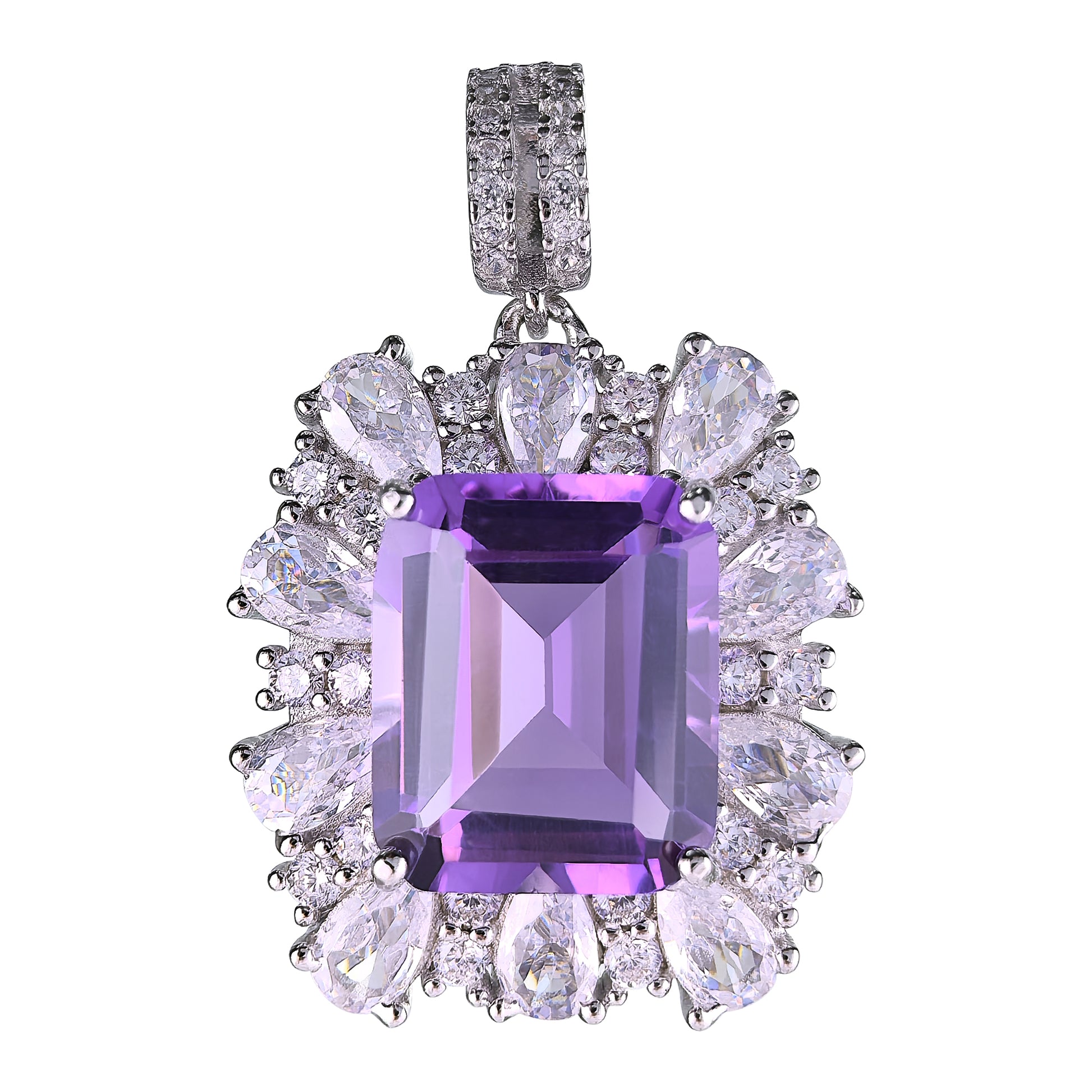 Rhodium Plated Prata 925 Atacado Emerald Cut Natural Amethyst Pendant