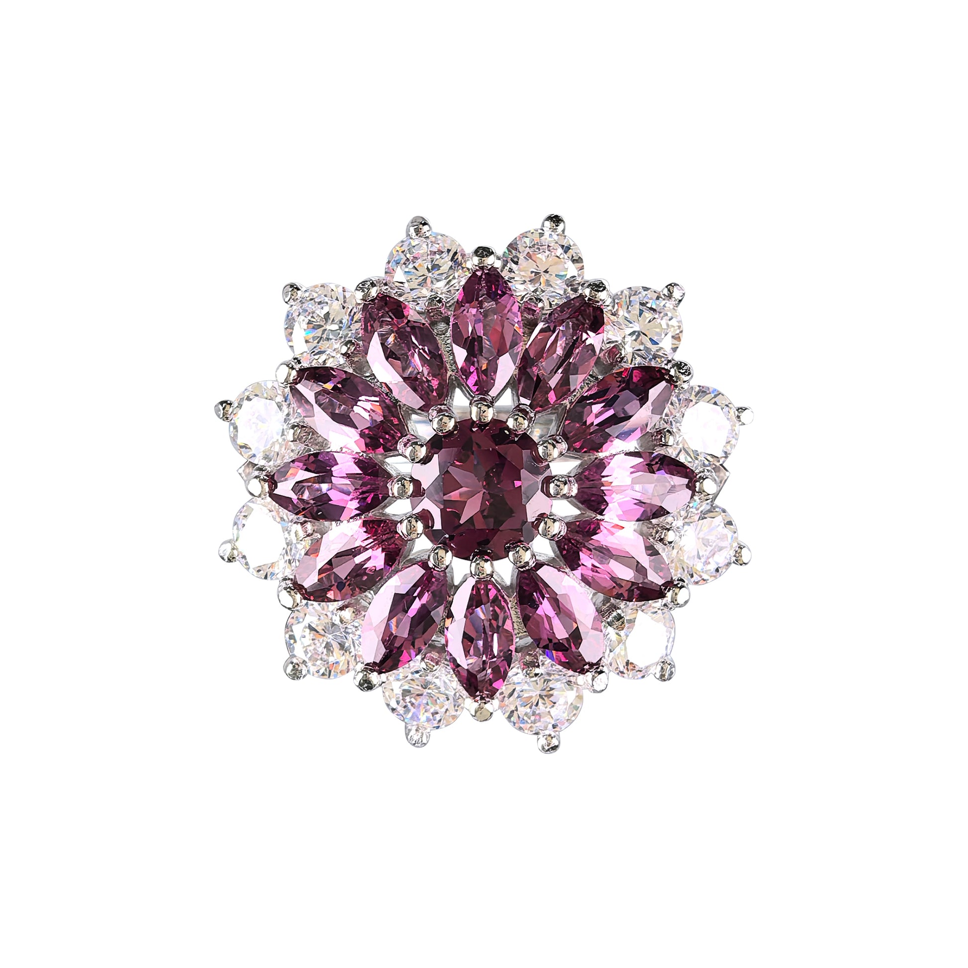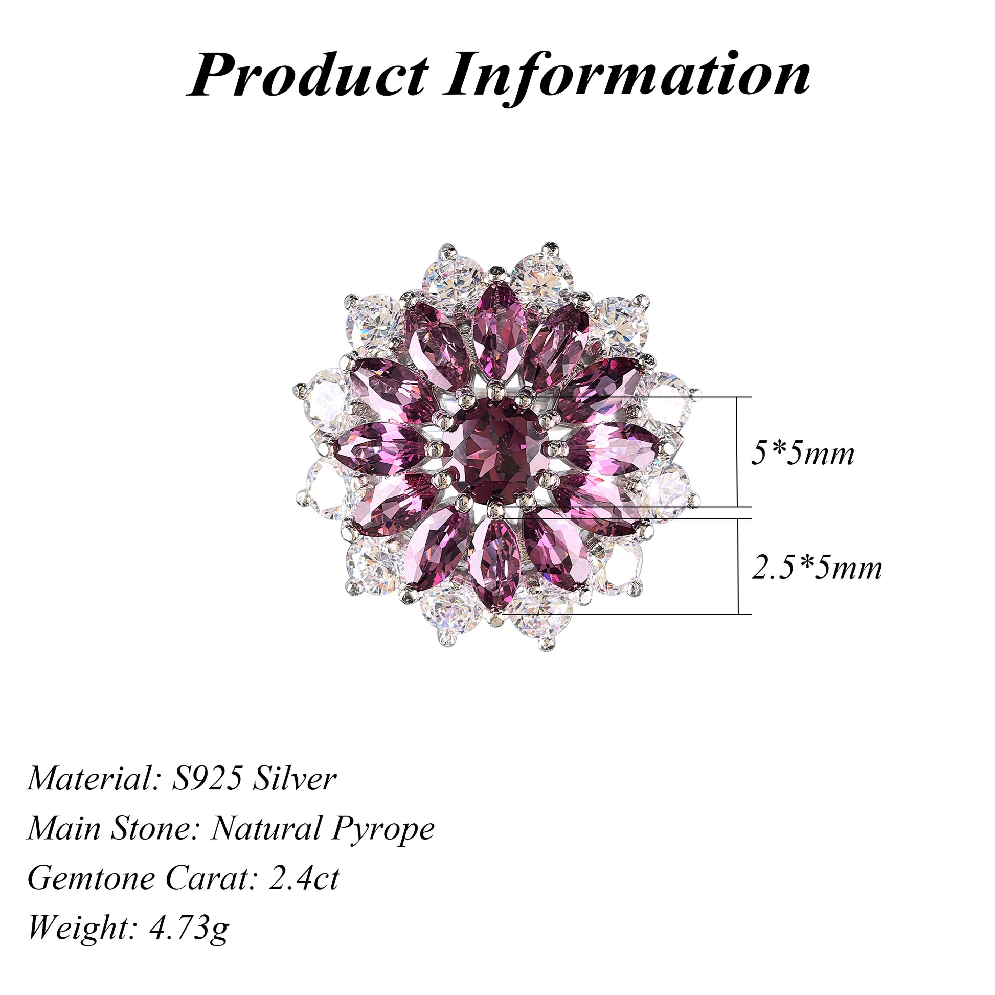 Romantic Rhodium Plated 925 Silver Jewelry Natural Pyrope Flower Ring