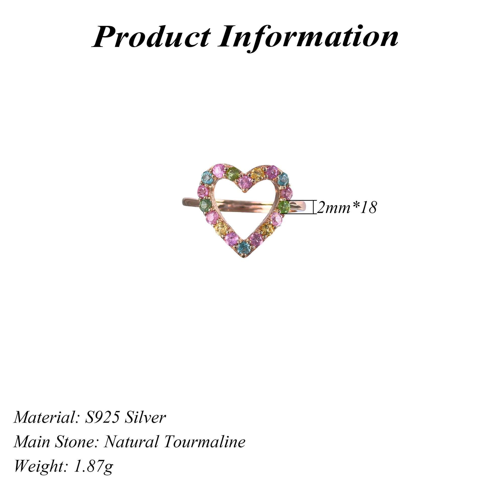 Romantic Rose Gold-Plated 925 Silver Natural Tourmaline Heart Gemstone Ring