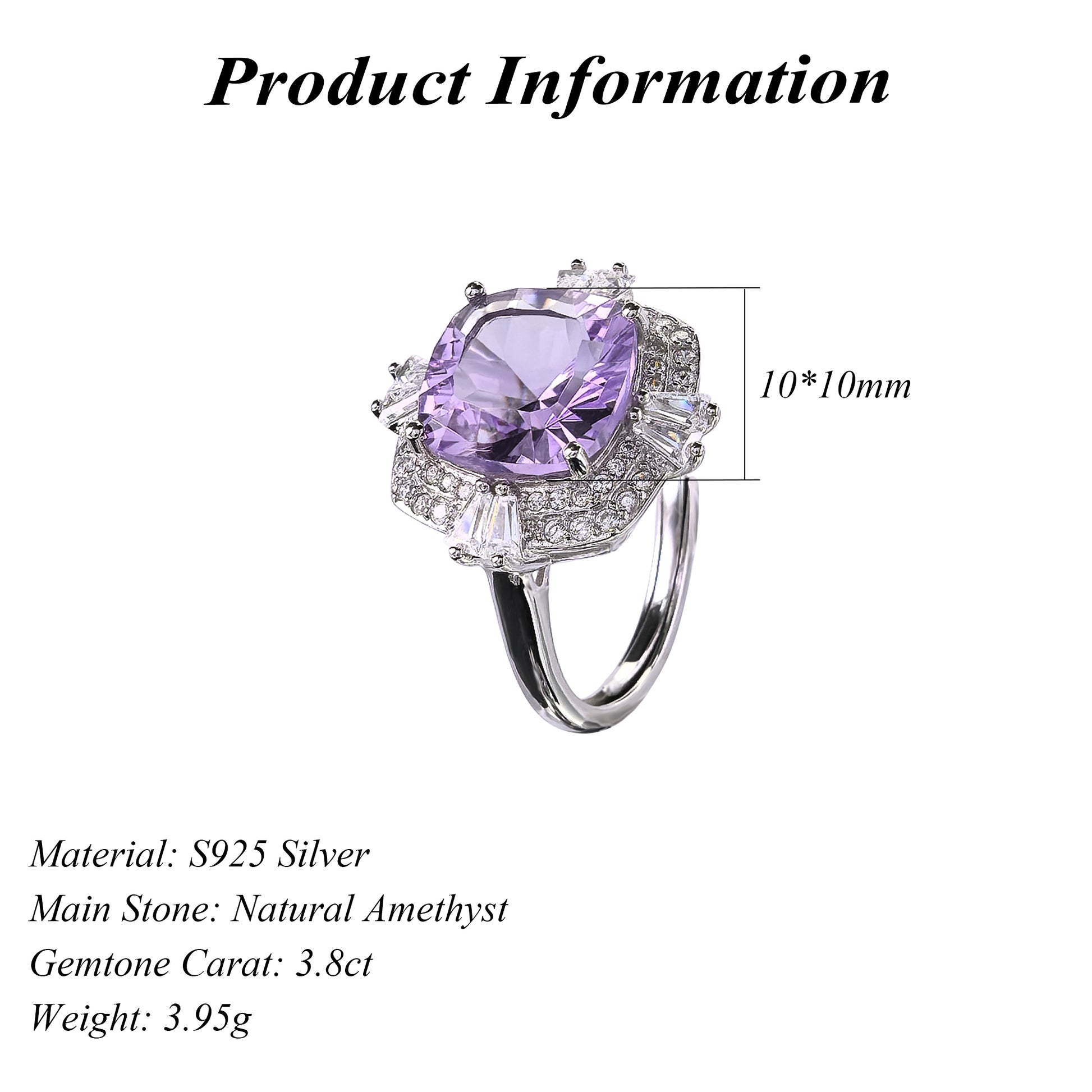 Shimmering Rhodium Plated Silver 925 Gemstone Ring Natural Amethyst