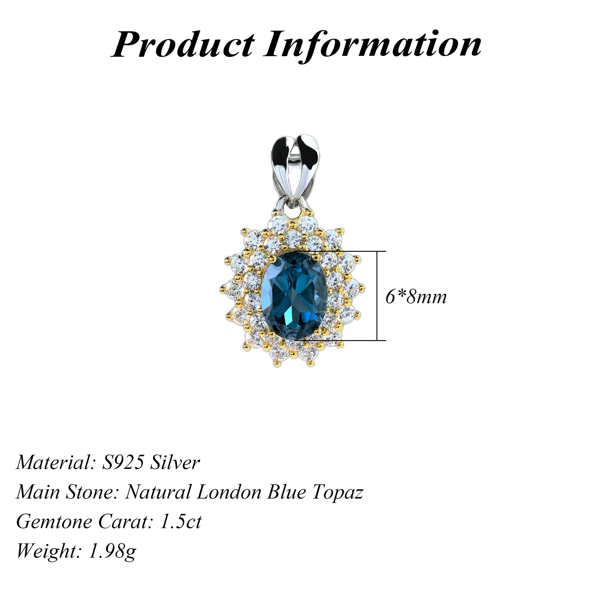 Sparkling Dual Color Plated Silver 925 Natural London Blue Topaz Pendant