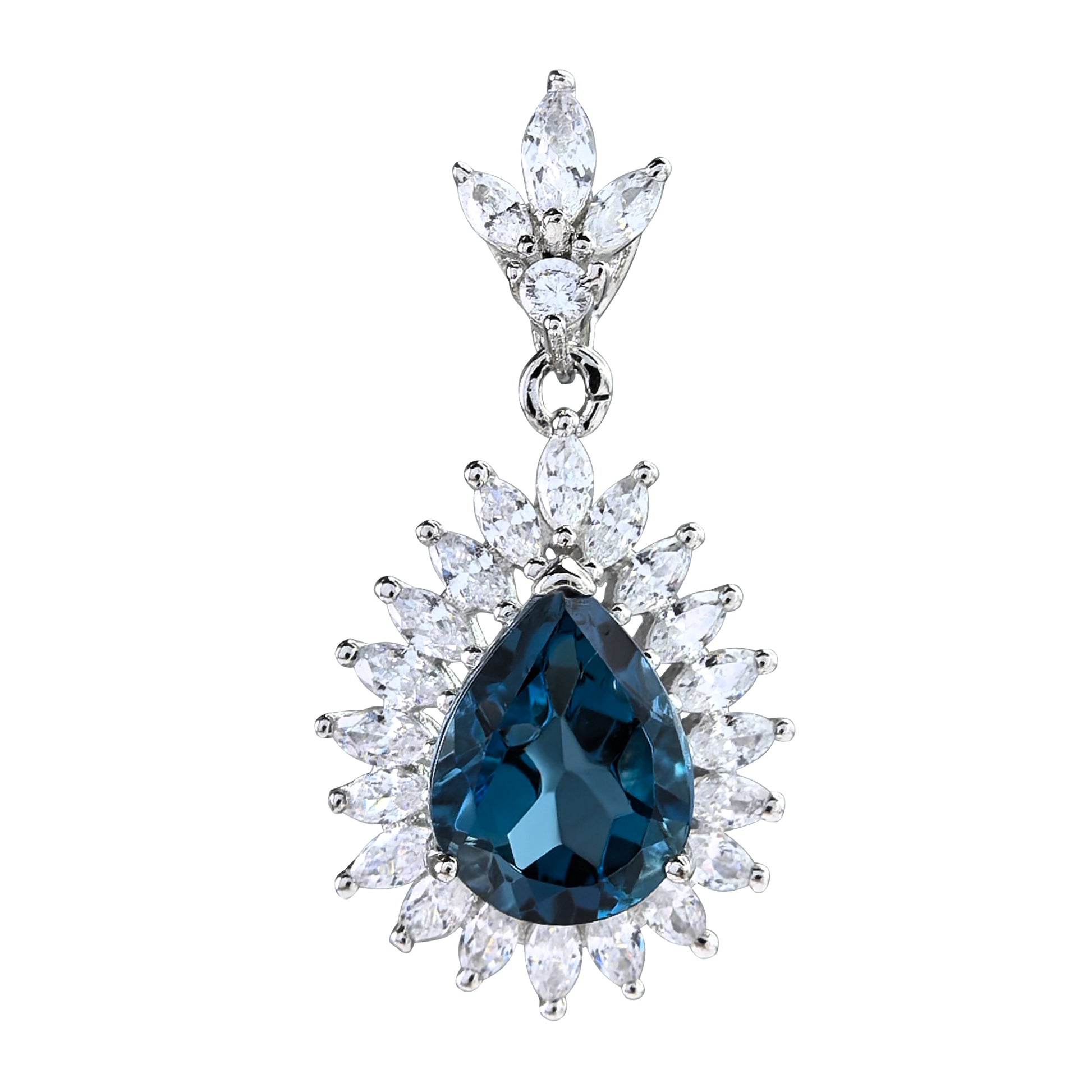Sparkling Rhodium-Plated 925 Sterling Silver London Blue Topaz Pendant