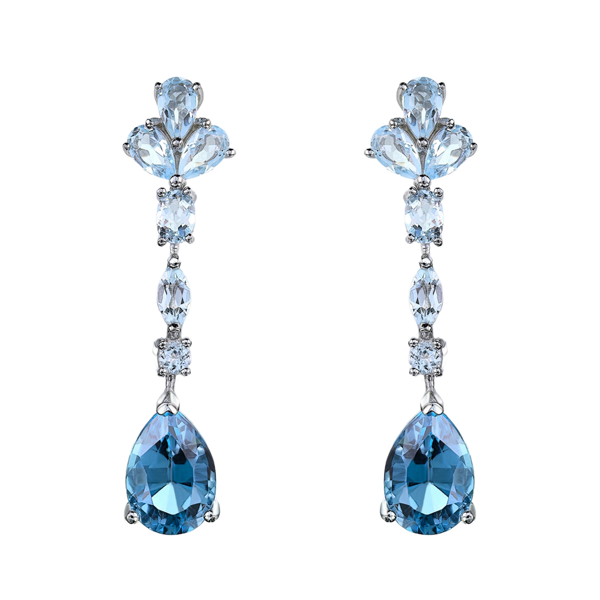 Trendy Rhodium Plated Silver 925 Jewelry Natural London Blue Topaz Clover Drop Earrings