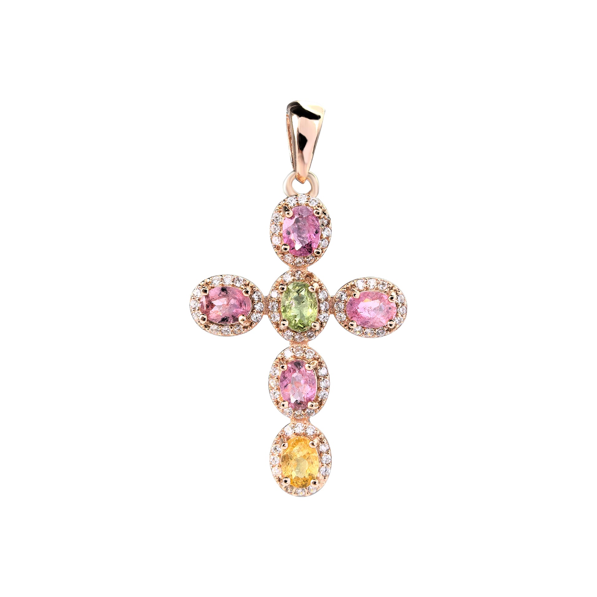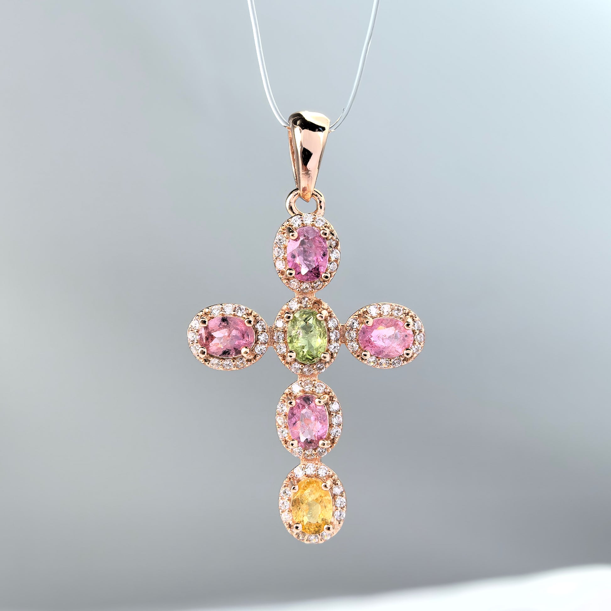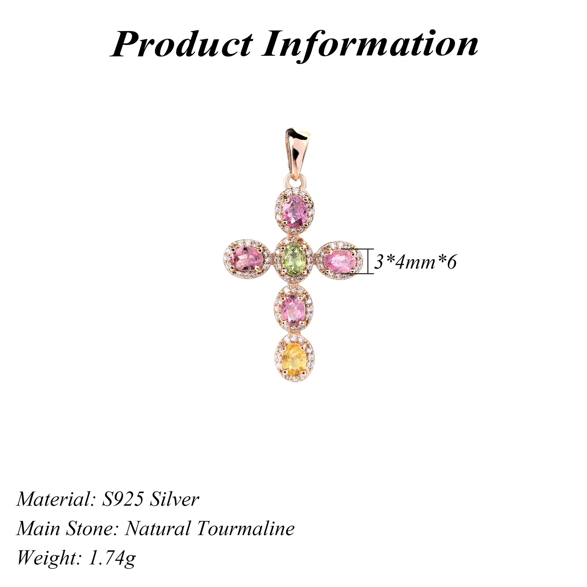 Trendy Rose Gold Plated 925 Sterling Silver Natural Tourmaline Cross Pendant