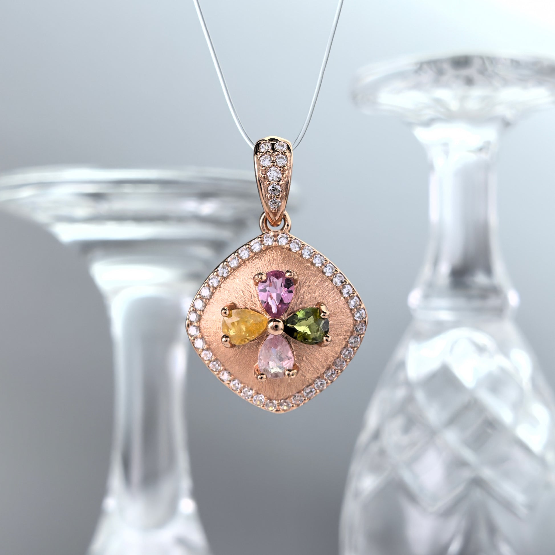 Trendy Rose Gold Plated 925 Sterling Silver Natural Tourmaline Four Leaf Clover Pendant