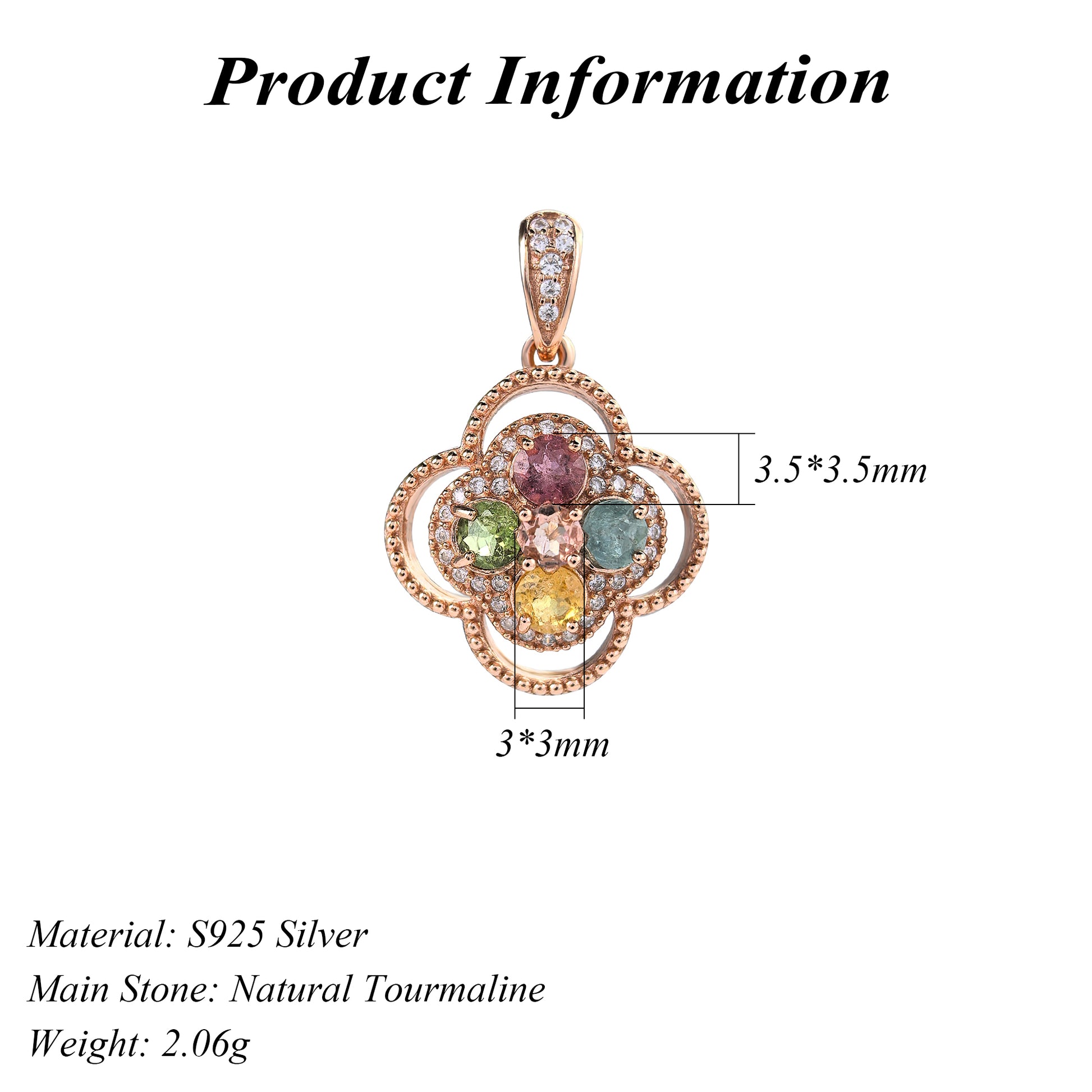 Trendy Rose Gold Plated 925 Sterling Silver Natural Tourmaline Pendant