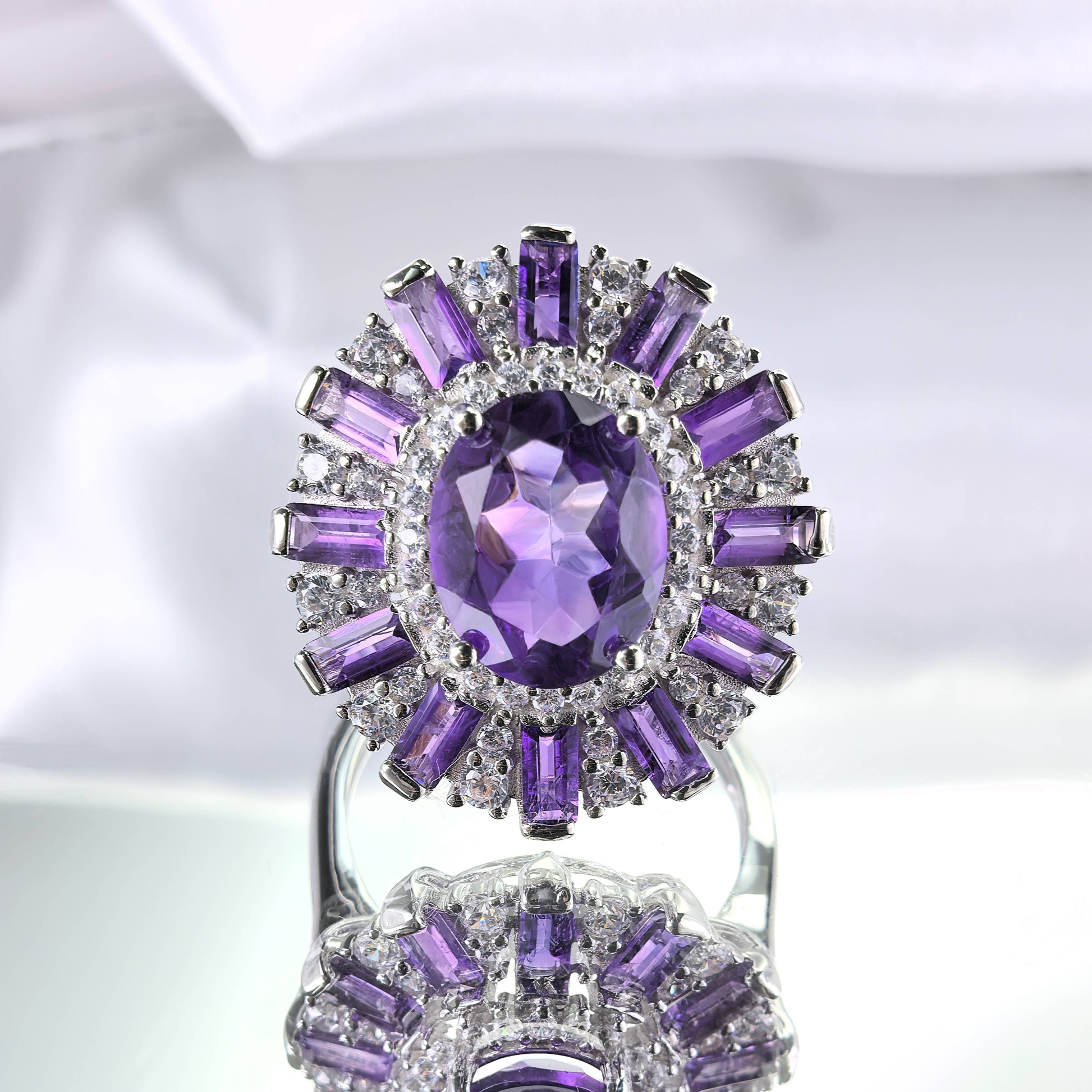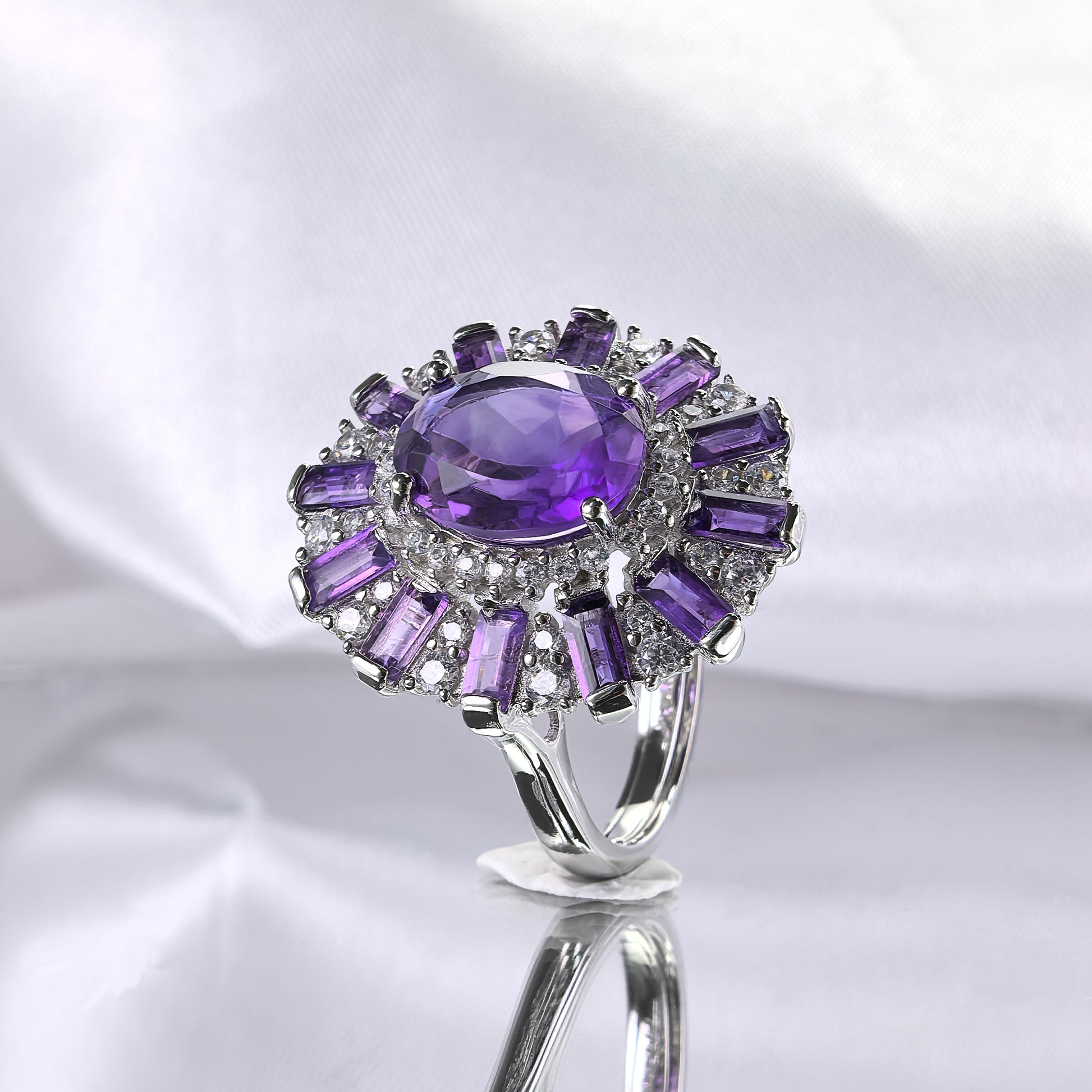 Vintage Rhodium Plated 925 Silver Jewelry Natural Amethyst Ring
