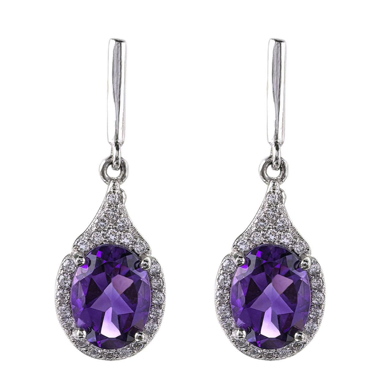 Vintage Silver 925 Rhodium Plated Natural Amethyst Drop Earrings